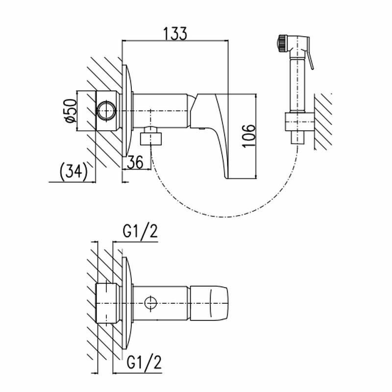 Смеситель RAV Slezаk Amur для биде скрытого монтажа, лейка с стоп вентилем пласт