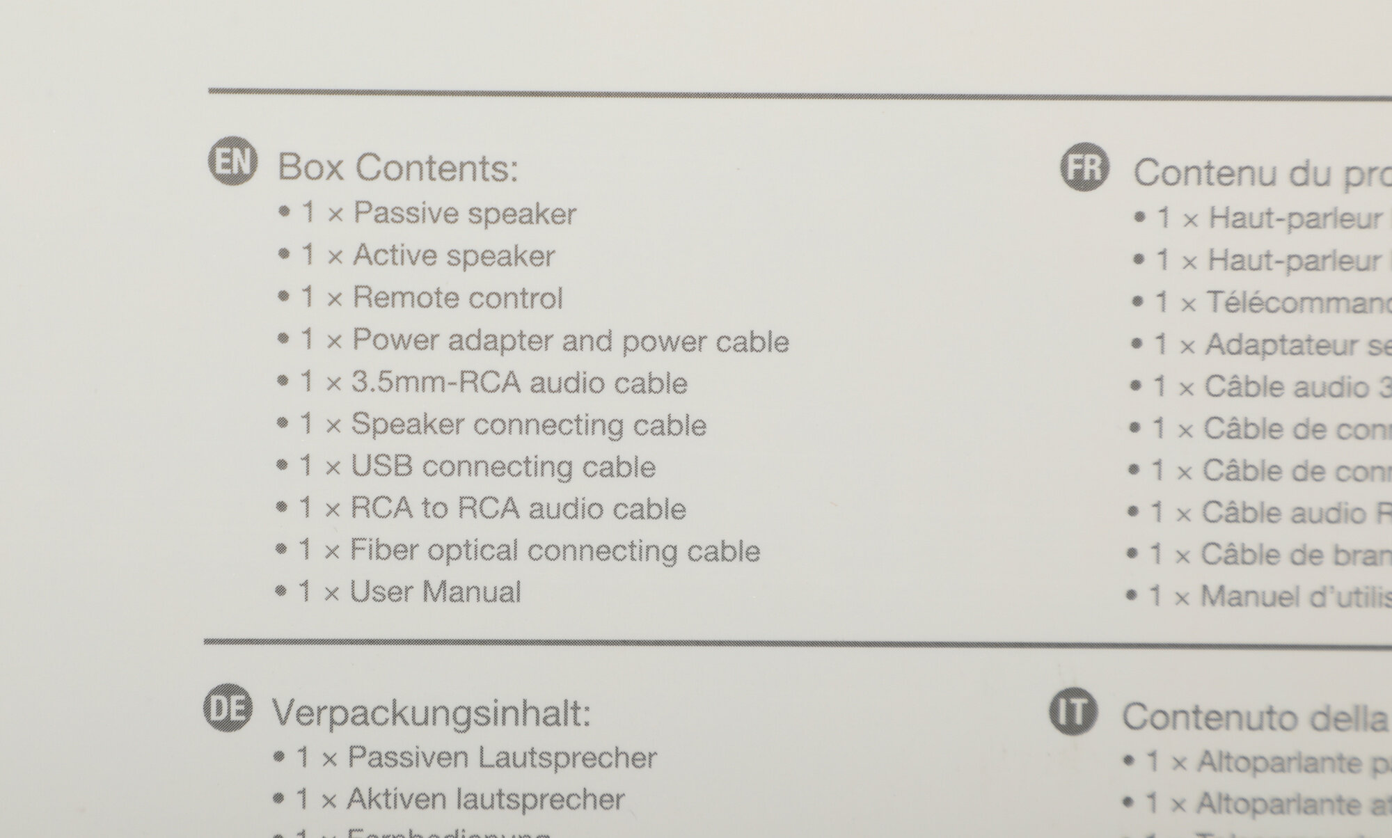 | Плюсы: | USB Hi-rez вход, оптика, усилители класса D, аудио-процессор, активное усиление сигнала, отличная фильтрация по полосам - нет перекрестных призвуков в динамиках. Длинный толстый соединительный кабель для пассивной колонки, пуль ДУ.