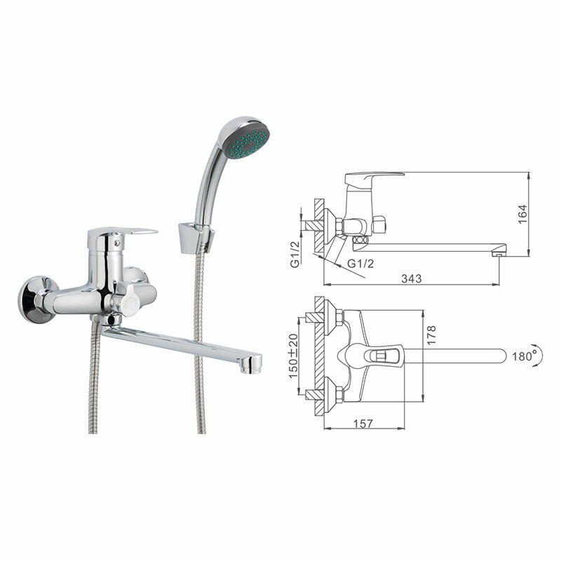 Смеситель для ванны Frap F22701-B, однорычажный, хром