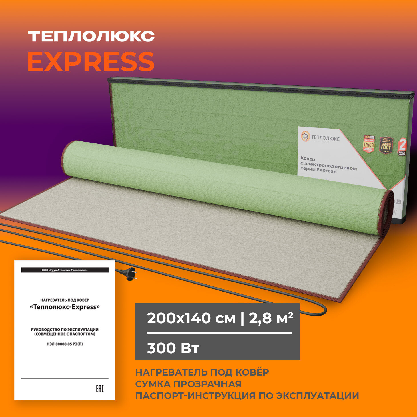 Коврик с подогревом Теплолюкс. Нагреватель под ковер "Теплолюкс-express" 200х140