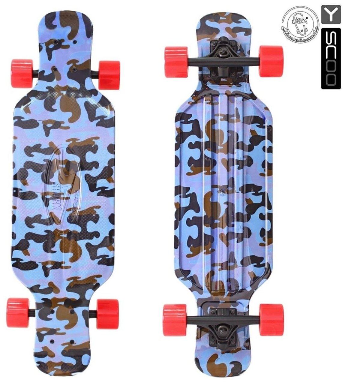 408-Ba Скейтборд Y-SCOO Longboard Shark TIR 31" пластик 79х22 с сумкой Blue Army BLUE,red