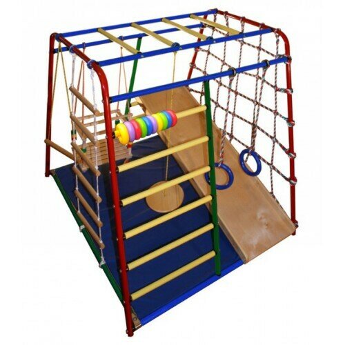 | Плюсы: | Приятный внешний вид, можно было выбрать из 3 цветов, устойчивый, быстрая доставка, в комплектации много всякой всячины ( качели, тарзанка, лесенка веревочная, кольца гимнастические, кольца для счета, горка, мат, веревочная стенка).