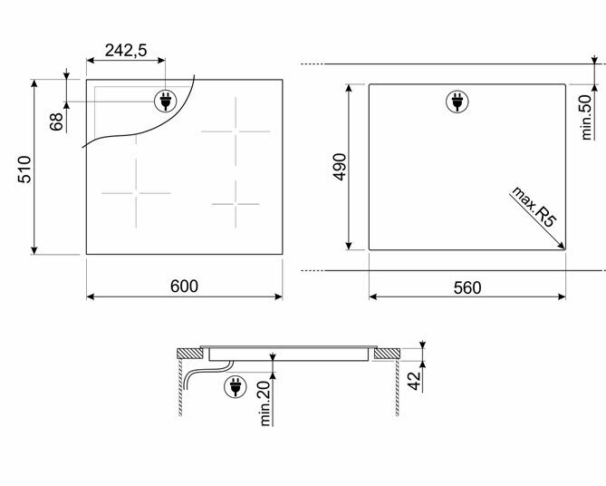 Варочная панель Smeg Электрическая, Стеклокерамическая 60 см, скошенный край