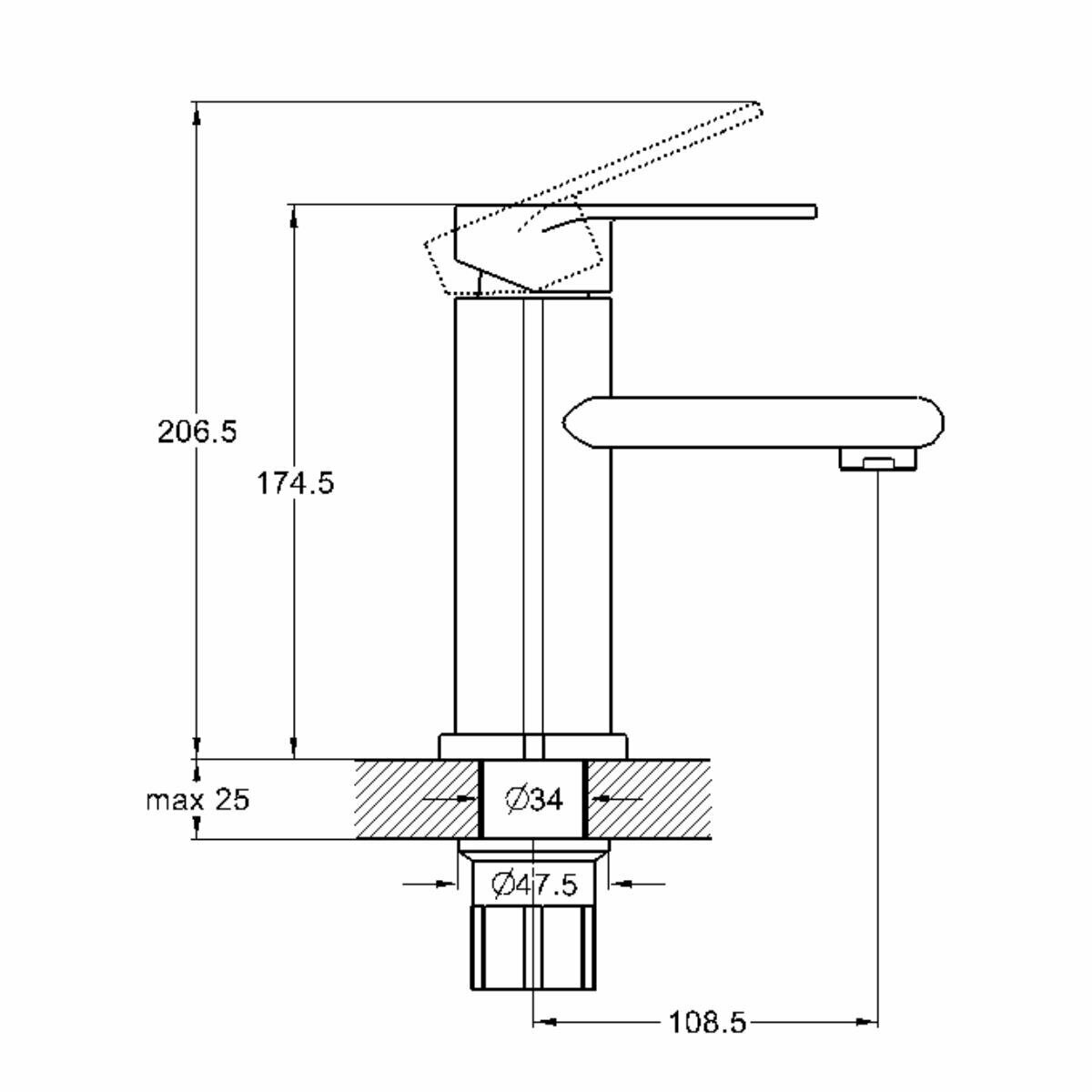 Смеситель для раковины G-LAUF NOB1-A128 35, шпилька