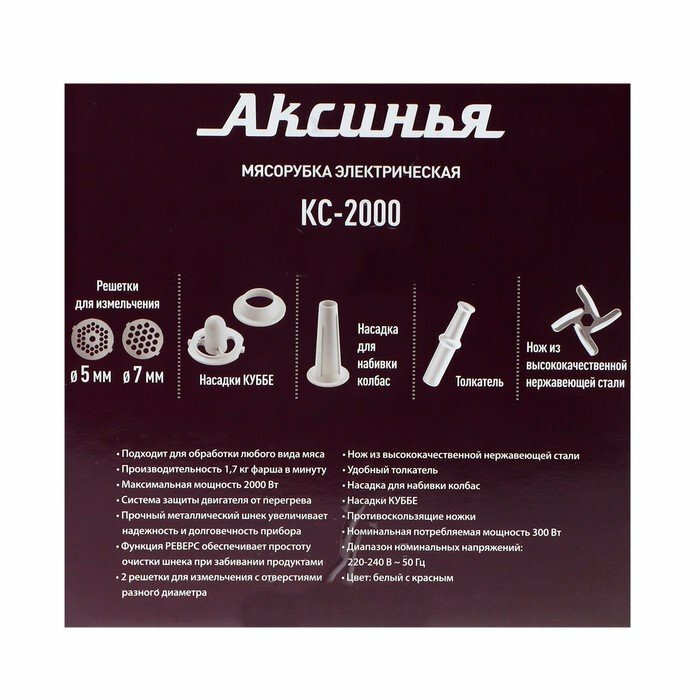 Мясорубка Аксинья КС-2000 белый с красным: 2000 Вт .