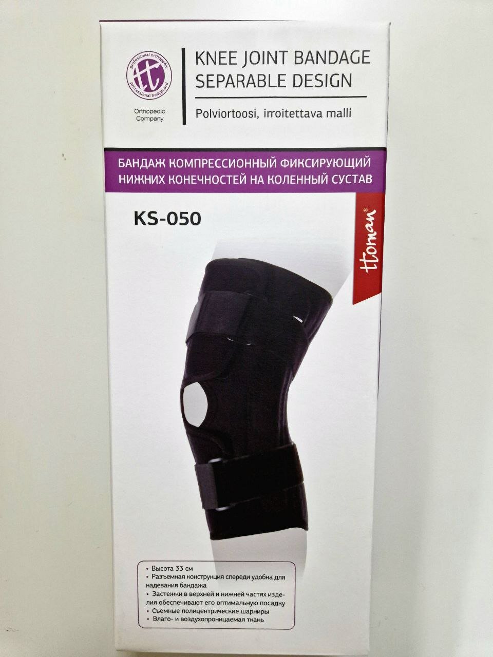 Бандаж коленный Ttoman KS-050, разъемный с полицентрическими шарнирами XXXL