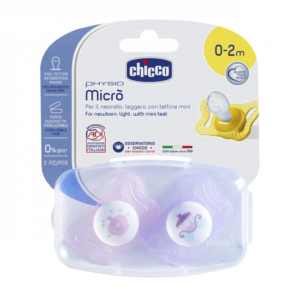 Пустышка силиконовая Chicco MICRO, 2шт., 0-2 мес силиконовая для принца