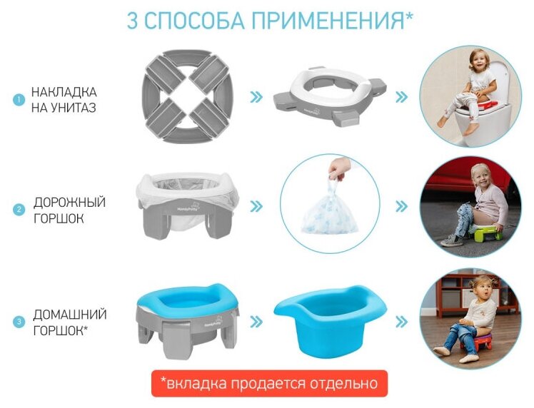 Горшок дорожный складной и насадка на унитаз HandyPotty от ROXY-KIDS с тремя пакетами, цвет серый