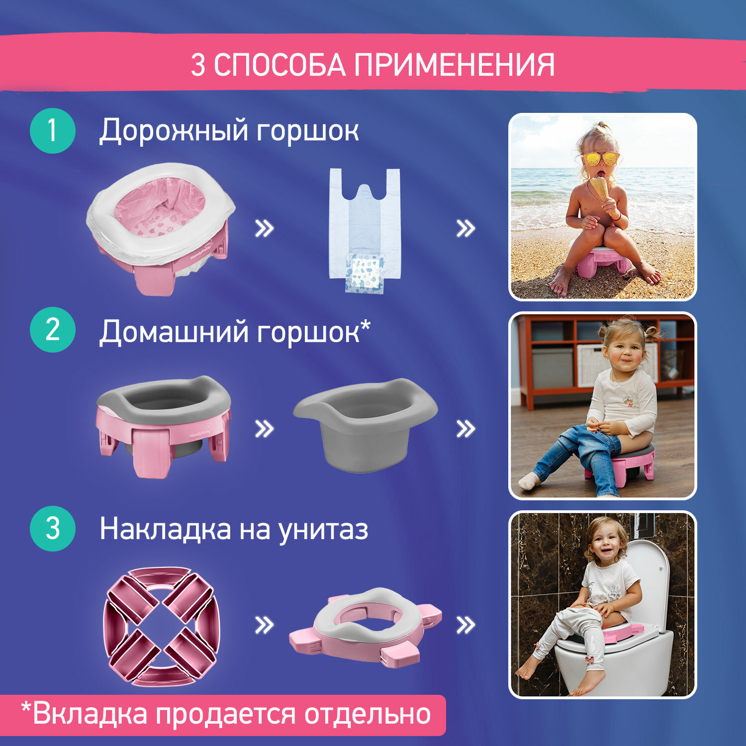 Горшок дорожный складной и насадка на унитаз HandyPotty от ROXY-KIDS с тремя пакетами, цвет розовый