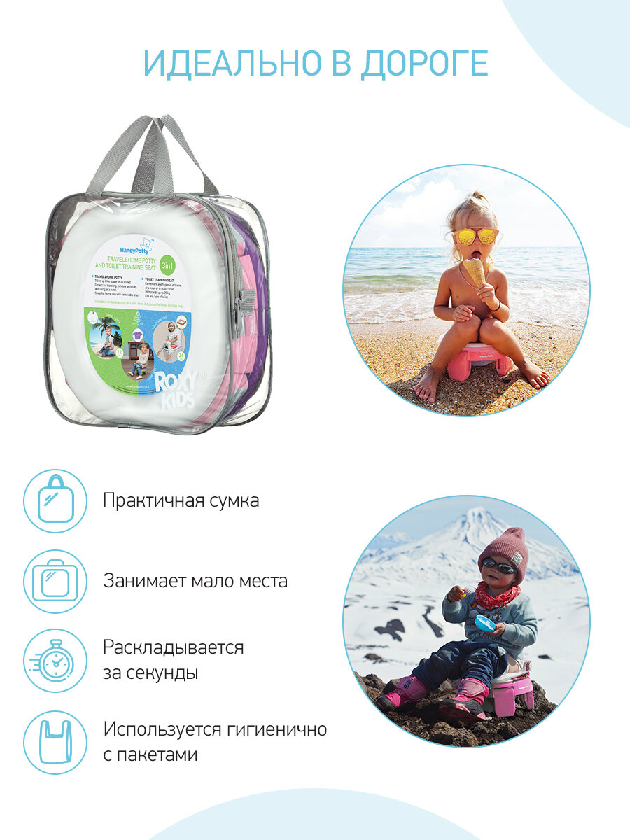 Горшок дорожный складной и насадка на унитаз HandyPotty от ROXY-KIDS с тремя пакетами, цвет фиолетовый