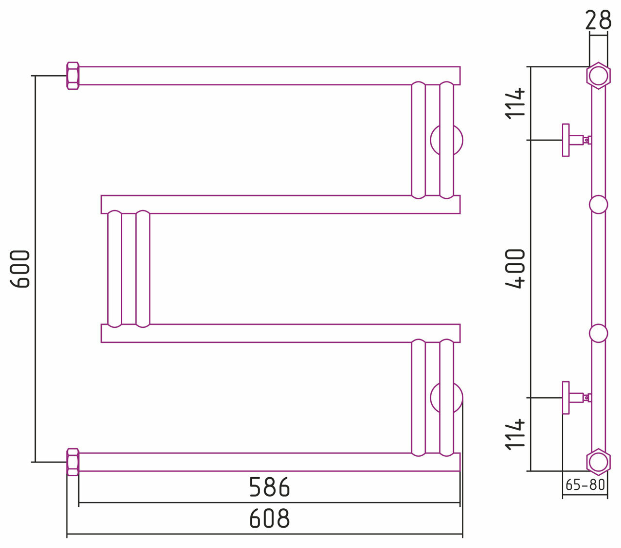 Полотенцесушитель водяной 600x600 Сунержа High-Tech model "M" 00-0050-6060