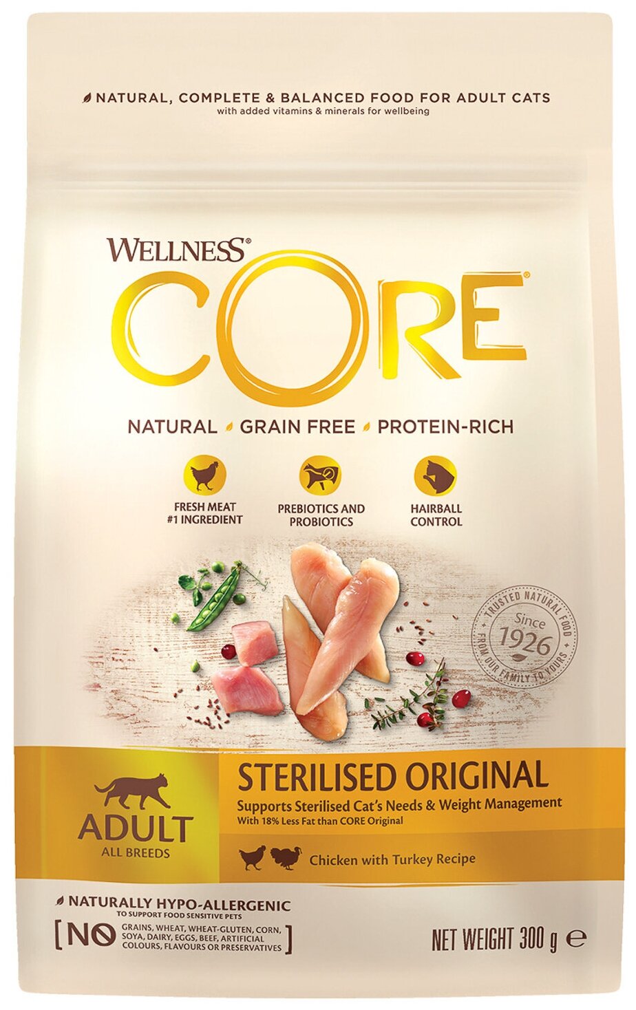 Сухой корм для стерилизованных взрослых кошек Wellness CORE Original, с курицей и индейкой 300 г