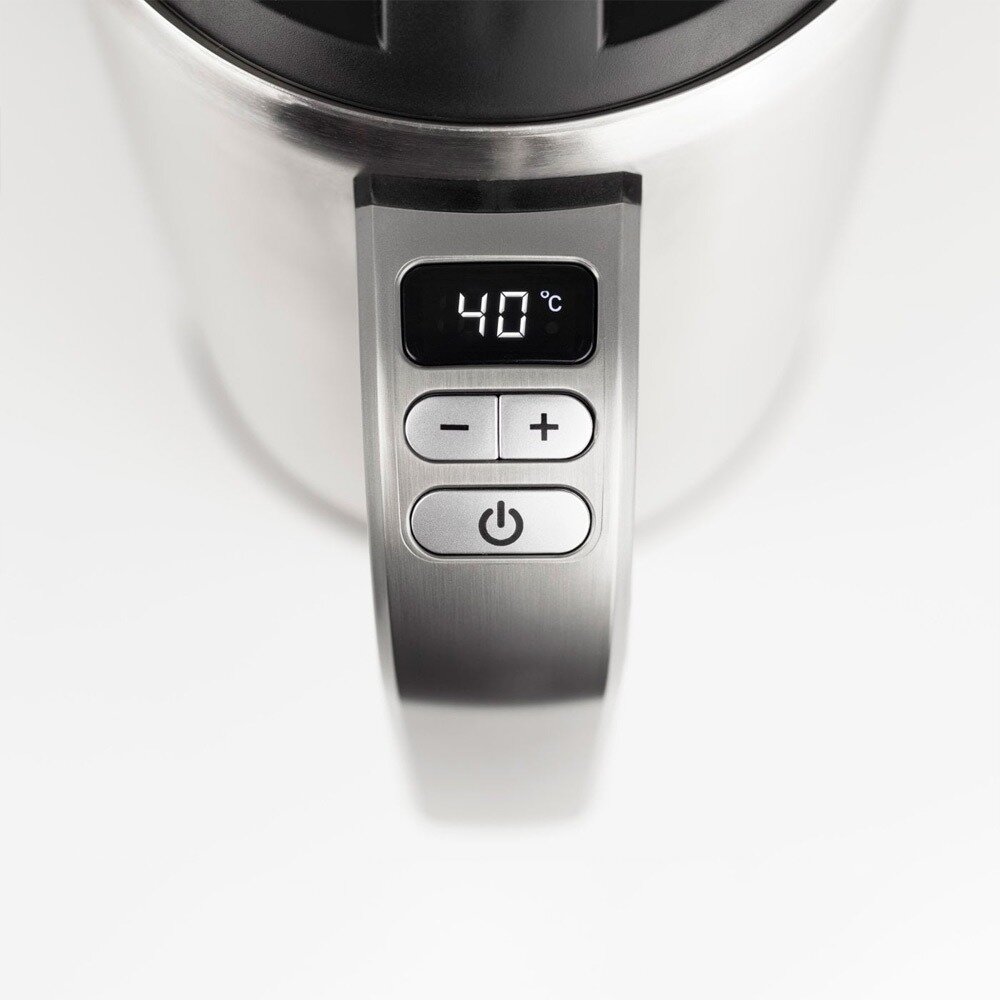 У чайника двойные стенки, металлические внутри и снаружи. Когда вода доходит до кипения (макс. 99 градусов), то внешняя колба нагревается всё равно, но прикоснуться аккуратно можно, ожогов не будет. А вот потом включается режим поддержания температуры, нагревается и внешняя колба тоже и она существенно горячая. Вместимость ровно 1 литр на максимуме, закипает ровно за 4 минуты. В общем и целом чайник нравится за красоту и компактность, нравится что крышка вынимается, поэтому ломаться со временем нечему. Наливать тонкой струйкой тоже приноровилась. Смущает "дыра"))))), сняла за нее одну звезду. |