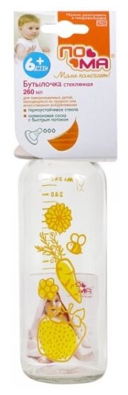 Бутылочка стеклянная пома Термостекло быстрый поток, 260 мл оранжевый 0+ мес интересное: