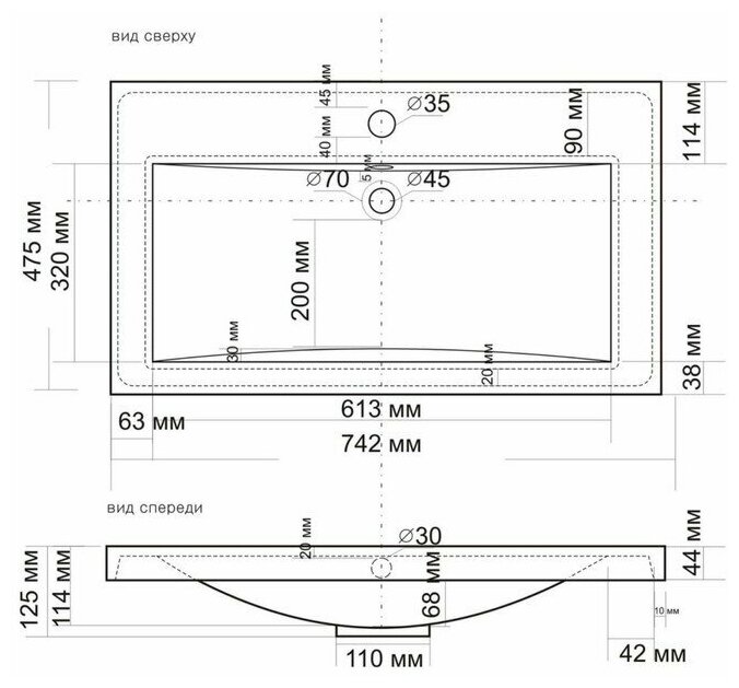 | Отверстие под перелив | есть |