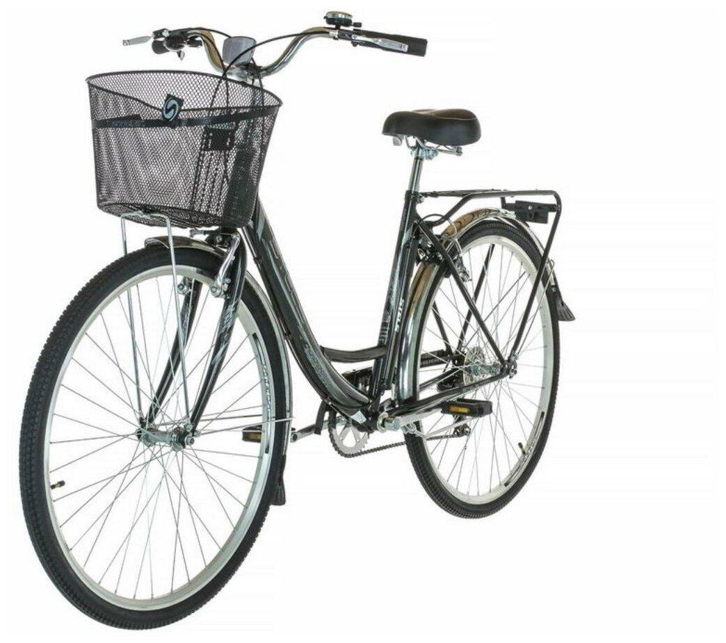 | Плюсы: | Низкая рама, наличие скоростей, корзинка и багажник, так же подножка и насос. |