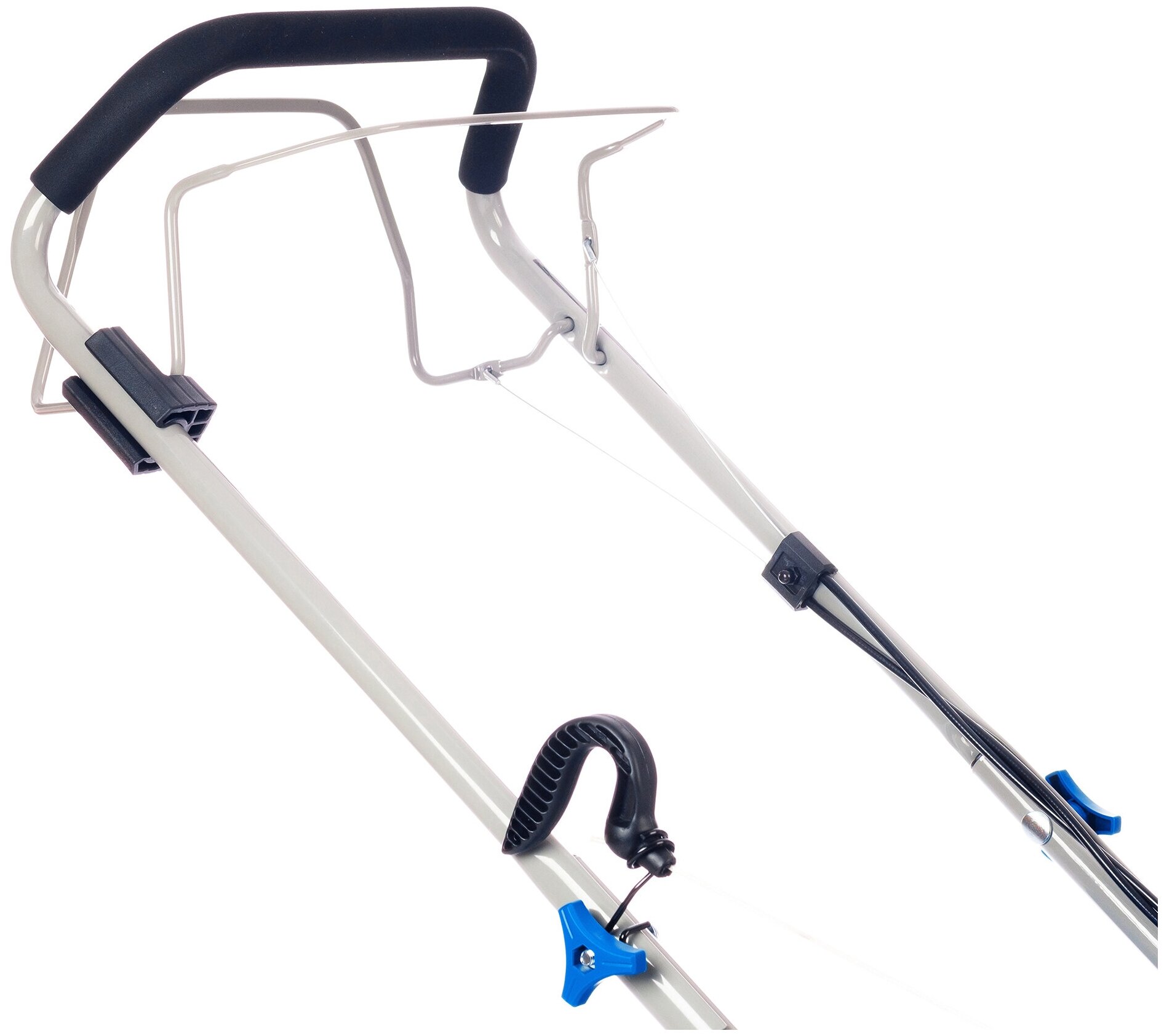 Неудобный травосборник - нижняя часть "мягкая" и без второй ручки. Эта мягкая часть рассыпется через пять лет. А предыдущая косилка была с жестким пластиковым бОльшим травосборником, что гораздо удобнее.