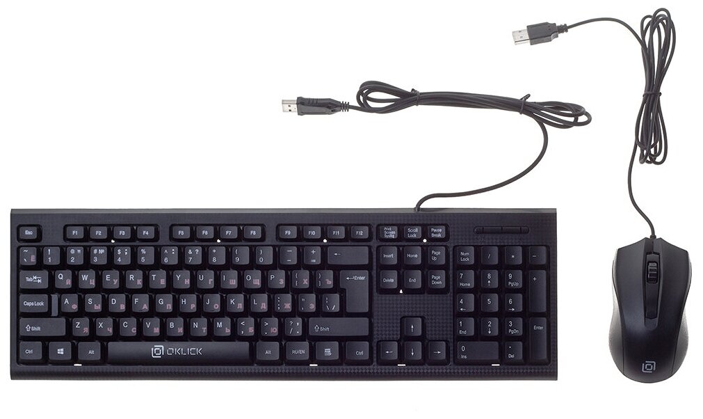 Комплект клавиатура + мышь Оклик 620M, (кл-ра: мембранная, черная; мышь: 1000 dpi, 3 кнопки, черная) USB, проводной