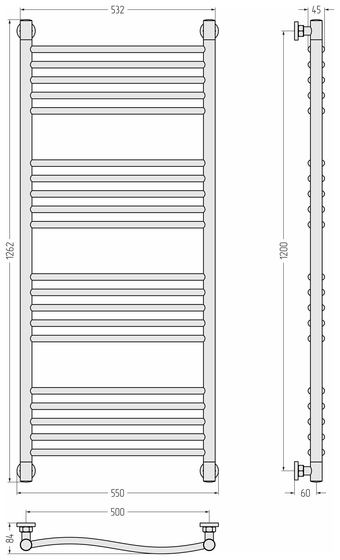 Полотенцесушитель водяной Сунержа, ДР “флюид“ 1200х500 (Без покрытия)