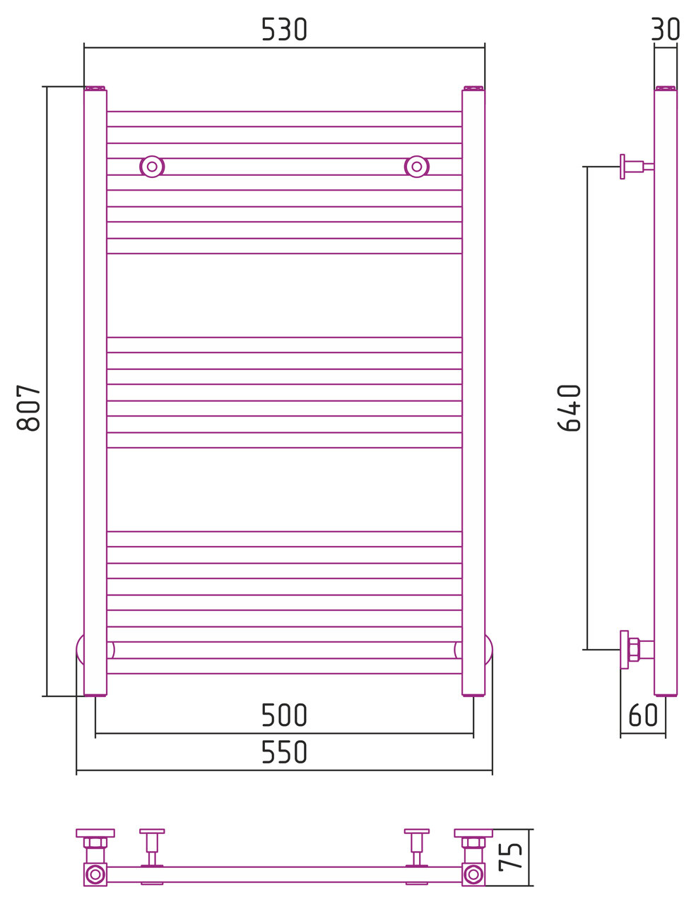 Водяной полотенцесушитель Aquanet Mauro(г2) 800x500