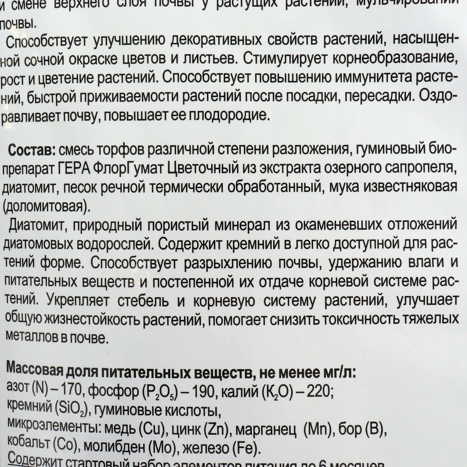 | Состав | Биогрунт Гера цветочный, 5 л, 0.5 кг |