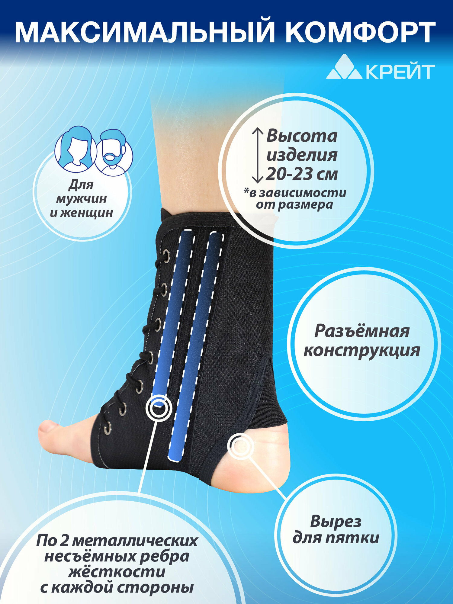 Бандаж для голеностопного сустава Крейт F-215, Размер 6, черный