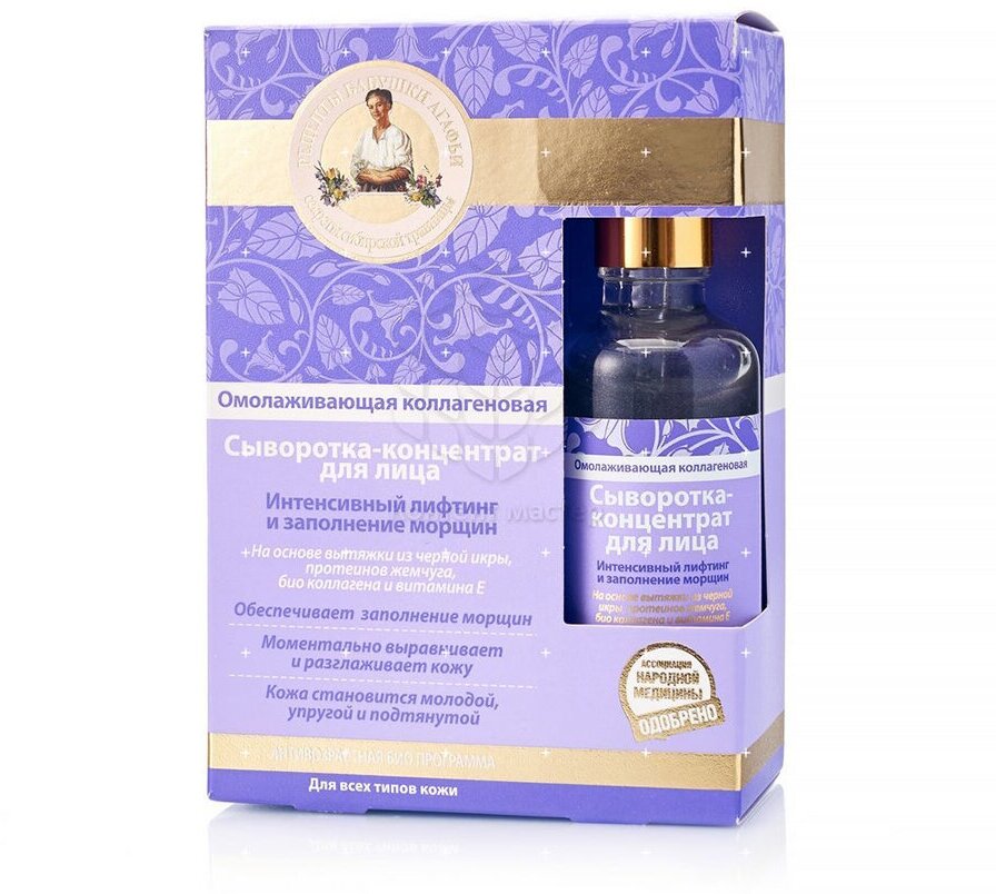 Рецепты бабушки Агафьи Сыворотка-концентрат для лица омолаживающая коллагеновая 50 мл интересное: