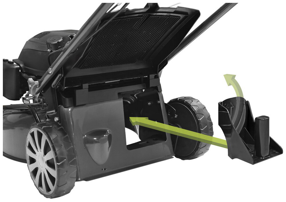 | Минусы: | самая большая проблема этой косилки неправильно сделанный травосборник. Он очень сильно задран . Из за этого не заполняется до конца и начинает плеваться травой . Трава попадает под колеса и получаются травяные дорожки, которые потом очень некрасиво смотрятся . |