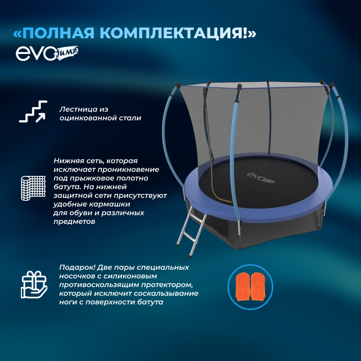Батут EVO JUMP Internal 8ft (Blue) c внутренней сеткой и лестницей + нижняя сеть + носочки