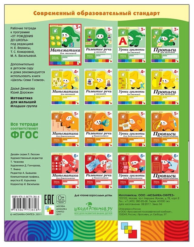 Рабочие тетради и прописи мозаика-синтез Рабочая тетрадь «Математика для малышей» (младшая группа), Денисова Д.
