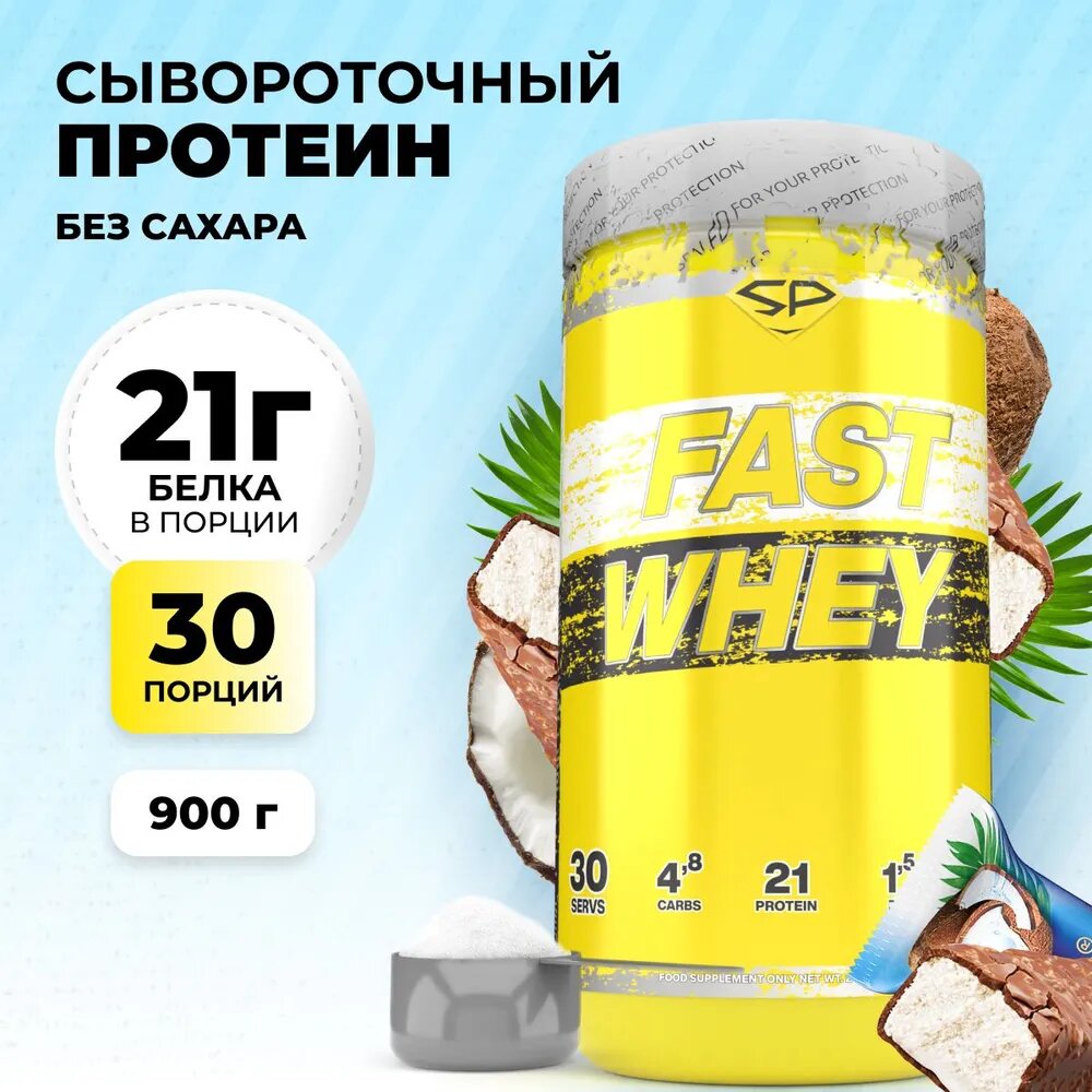 Протеин сывороточный STEELPOWER / Протеиновый коктейль для похудения / Сывороточный протеин FAST WHEY, 900 гр, Шоколад Кокос (Баунти)
