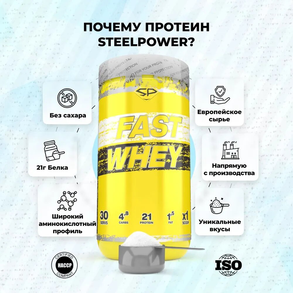SteelPower Сывороточный протеин FAST WHEY, 900 гр, вкус «Сливочный шоколад», STEELPOWER