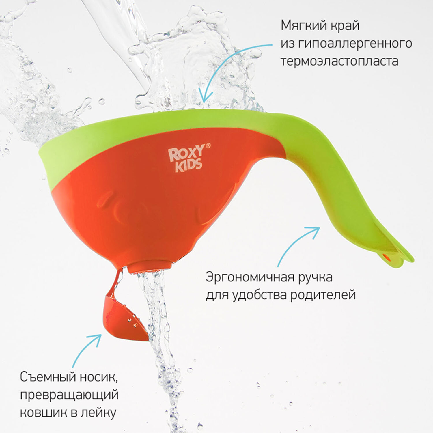 Ковш для ванны Roxy-Kids Flipper с лейкой, оранжевый