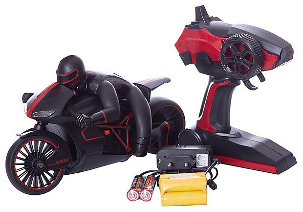 мотоцикл с гонщиком на р/у 1toy Драйв, 2,4GHz, езда с наклоном, свет фар, с АКБ 700mAh Ni-CD, красны .