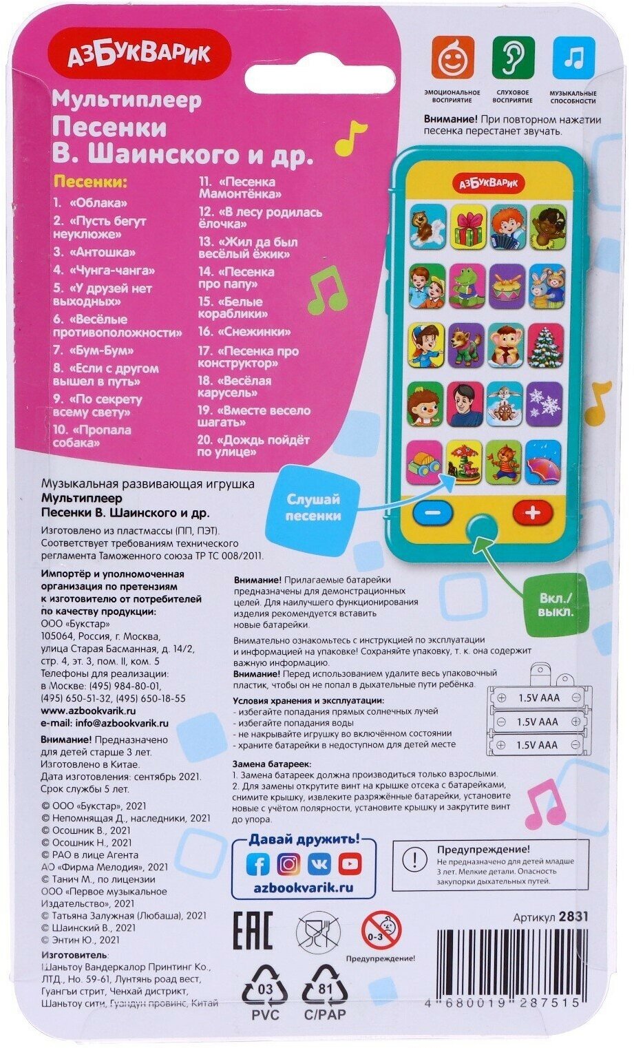 Ниже Вы можете прочитать отзывы на Азбукварик Мультиплеер «Песенки В. Шаинского и др.», ознакомится с подробными характеристиками, посмотреть интересные обзоры и фотографии на Азбукварик Мультиплеер «Песенки В. Шаинского и др.».