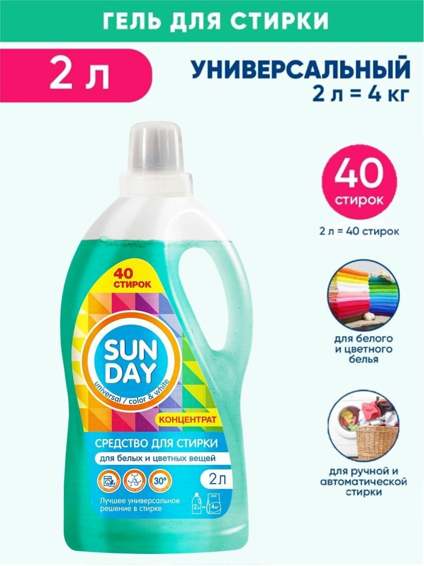 Жидкое средство для стирки Sunday для цветного и белого, универсальный 2 л