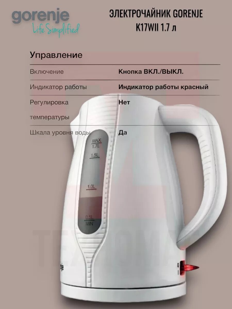 Ниже Вы можете прочитать отзывы на Чайник Gorenje K17WII, ознакомится с подробными характеристиками, посмотреть интересные обзоры и фотографии на Чайник Gorenje K17WII.