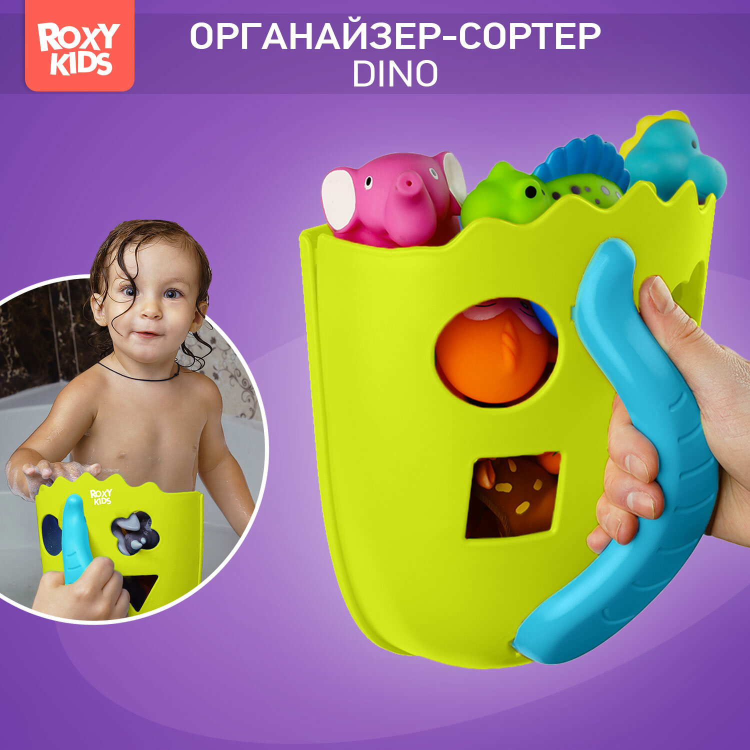 Купить Органайзер-сортер Roxy-Kids Dino для игрушек и банных принадлежностей, зеленый