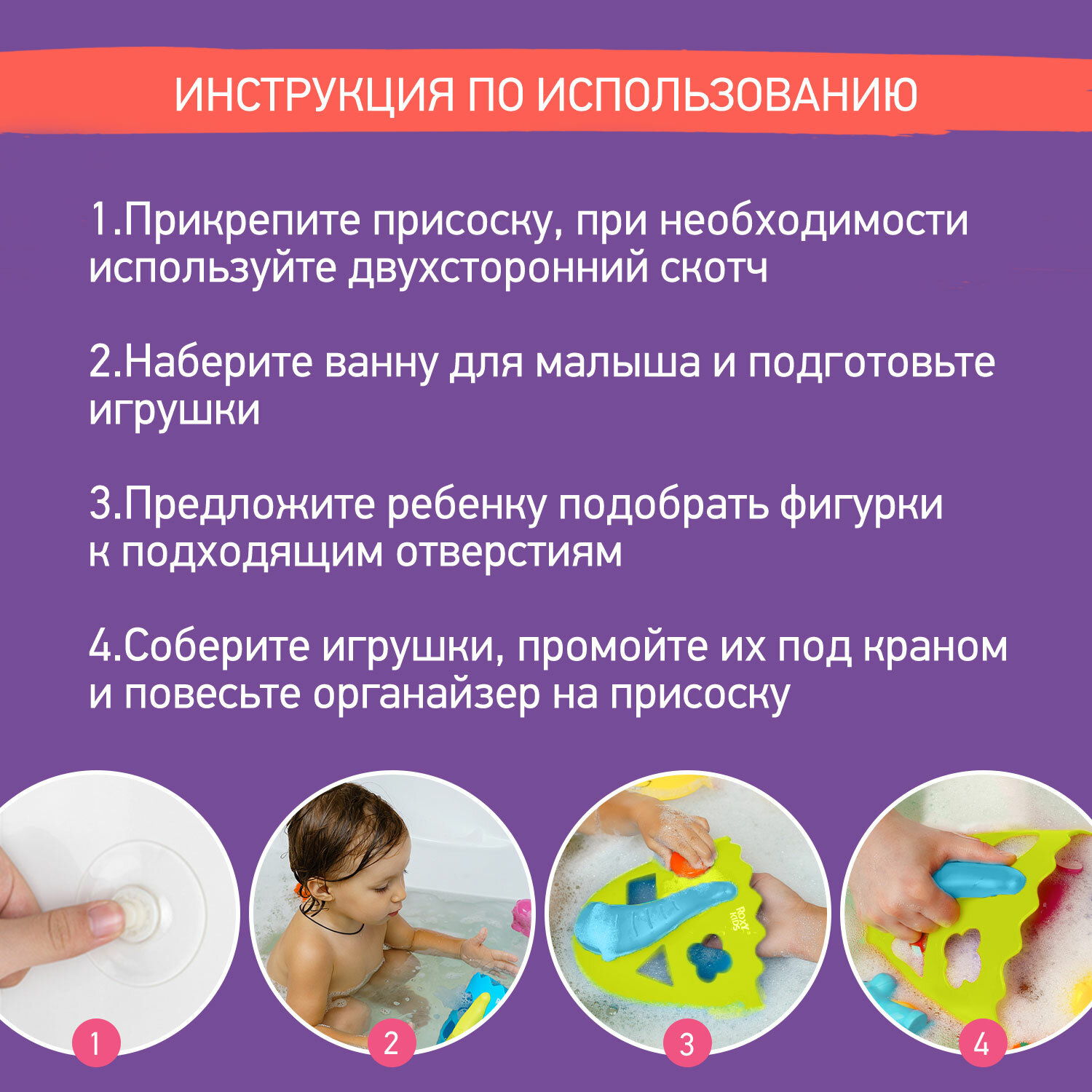| Отзыв: | Классный органайзер для ванны, пластик качественный, приятный на ощупь. Ребёнок очень любит с ним играть, как с сортером в ванной, внизу есть дырочки,можно черпать воду и смотреть как она льётся. Удобно собирать все игрушки из ванной |