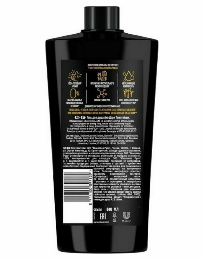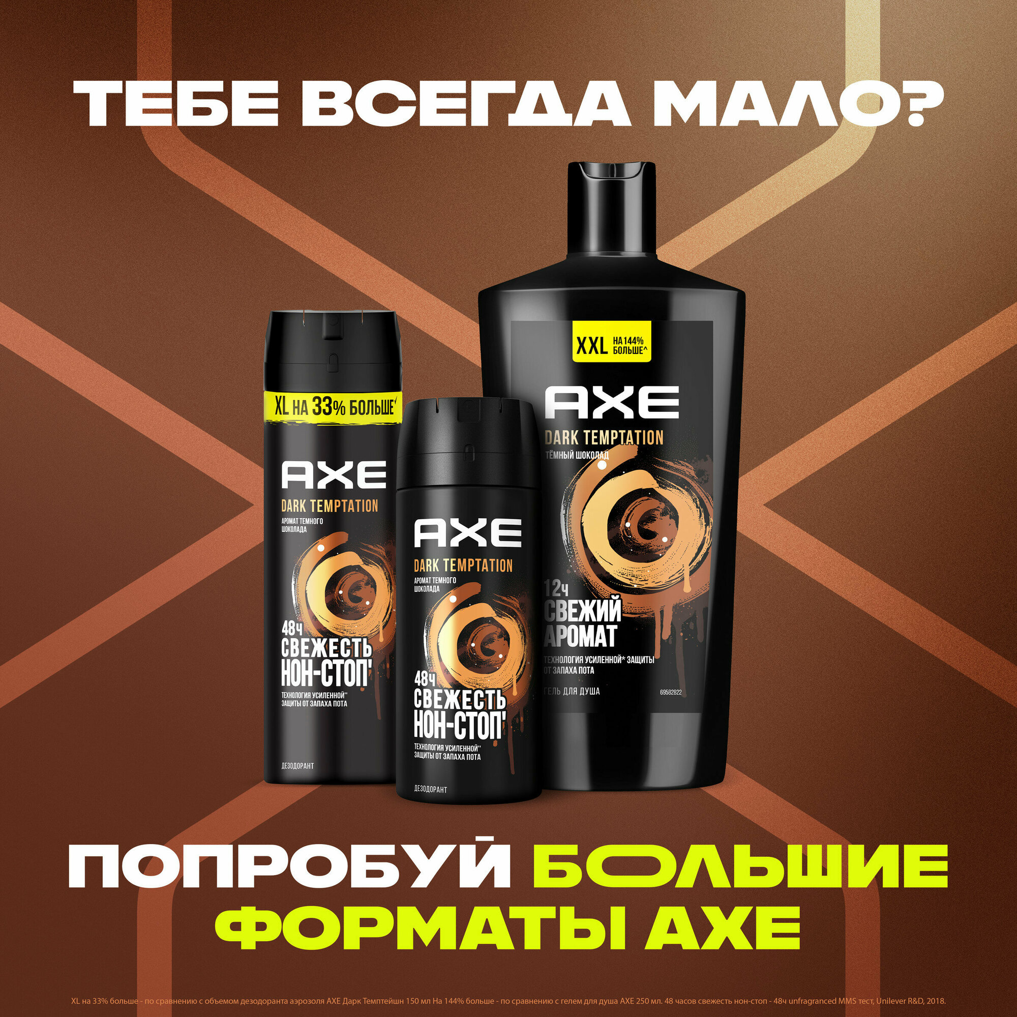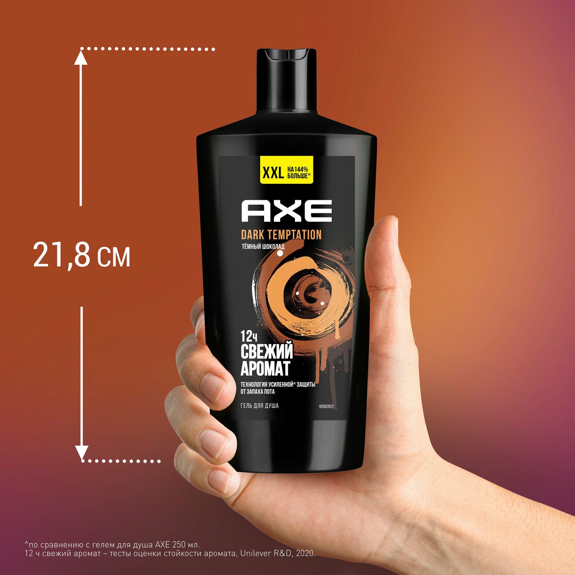 Купить AXE DARK TEMPTATION мужской гель для душа с защитой от запаха пота на 12 часов и топовым ароматом шоколада 610 мл
