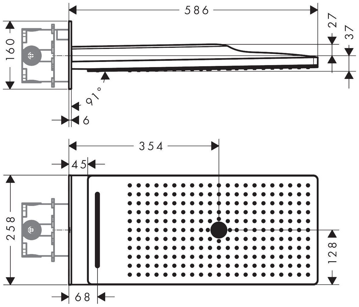 | Форма верхнего душа | прямоугольная |