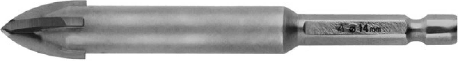 Сверло по кафелю, керамике, стеклу, с четырьмя режущими лезвиями, шестигранный хвостовик, 14 мм, STA (2985-14_z01)