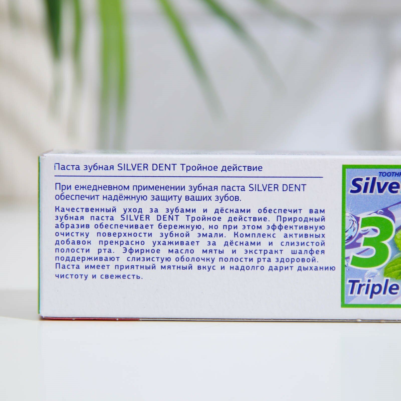 Зубная паста Silver Dent "Тройное действие", Масло мяты перечной, экстракт шалфея, ментол, 100 г (5865)