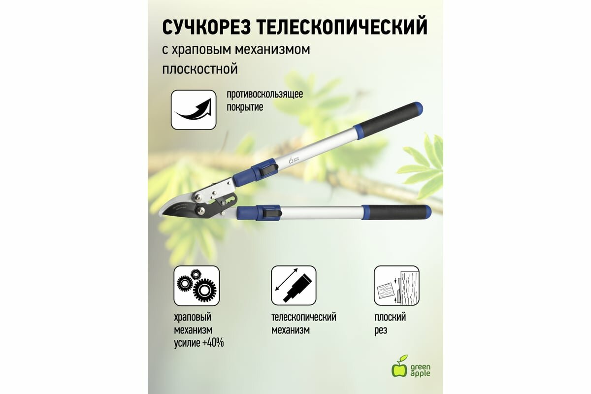 Купить Green Apple GTBL12-007 GREEN APPLE Сучкорез телескопический (+30 см) с храповым механизмом, плоскостной