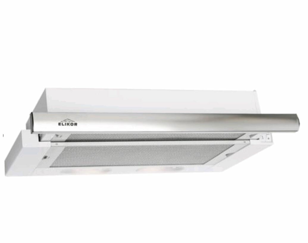 Вытяжка кухонная 45 см ELIKOR Интегра, встраиваемая, телескопическая, производительность - 400 м3/ч, управление клавишное, 2 скорости, лампы накаливания, белый / серебристый