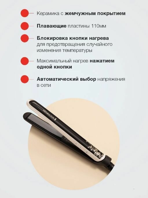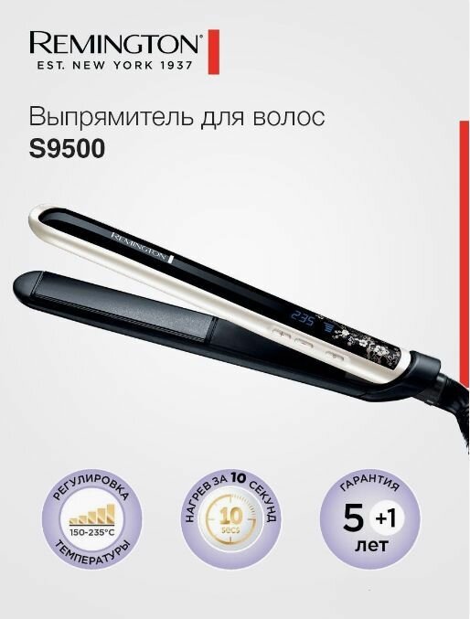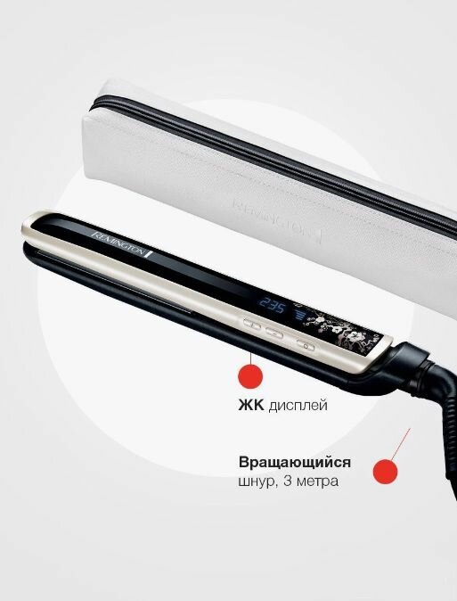 Выпрямитель для волос Remington Pearl S9500, керамика с жемчужным покрытием; ЖК дисплей; 150C-235C; плавающие пластины; блокировка кнопки нагрева, чехол