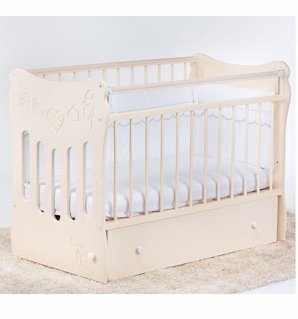 Кроватка "Бантики" маятник поперечный с ящиком, айвори