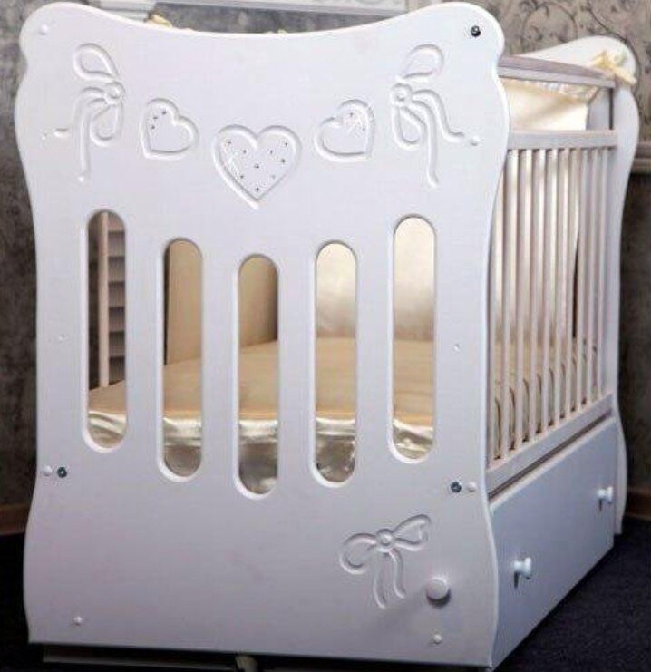 СохранитьДетская кроватка Островок уюта Бантики с поперечным маятником и ящиком - белый интересное:
