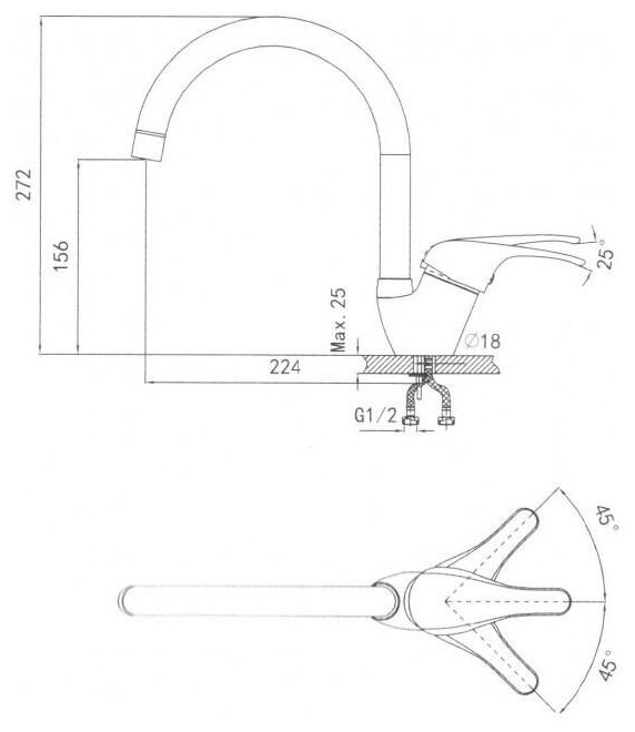Кухонный смеситель GRANULA 1024, хром смеситель кухонный