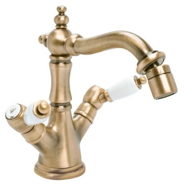 Смеситель для биде с донным клапаном бронза, ручки белые Cezares First FIRST-BS2-02-Bi